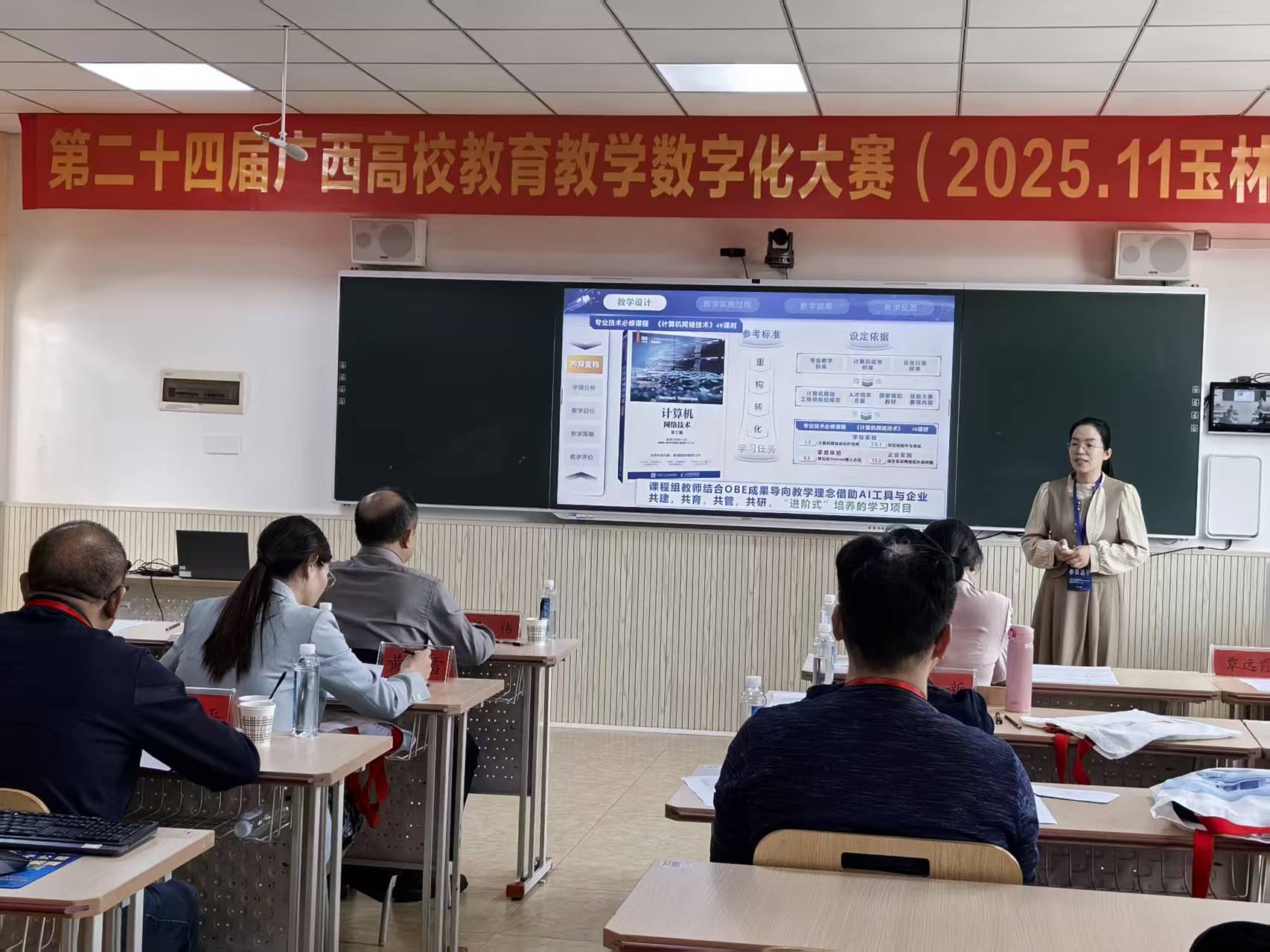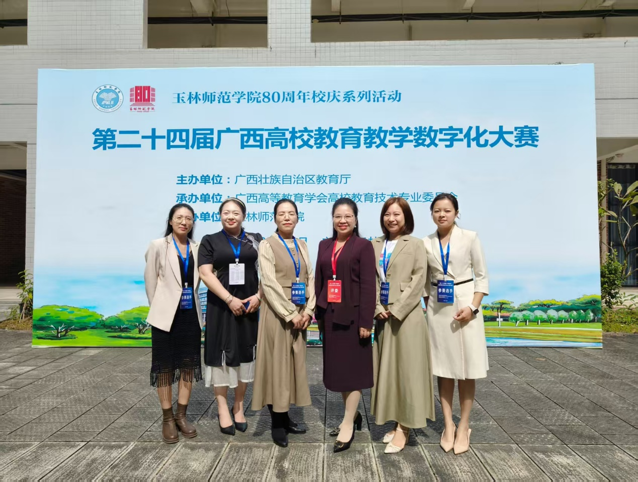 2025年11月1日,第24届广西高校教育教学数字化大赛在玉林师范学院成功举办。广西外国语学院高等职业学院教师谢桂萍、韦梦川、黄仁杰、韦国庆、黄宇组成的团队,在“赛项(一):AI赋能教学创新应用案例”中表现出色,荣获大赛三等奖。