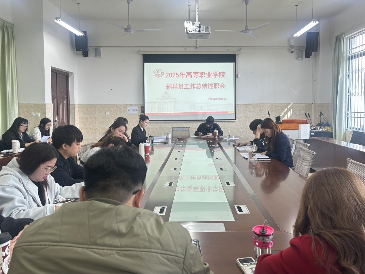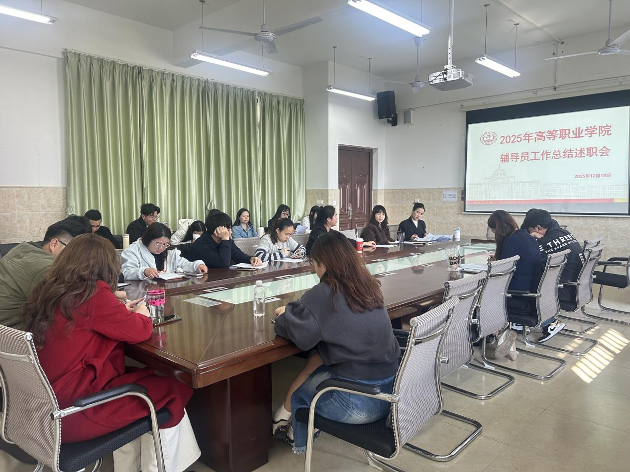 2025年12月18日,高等职业学院召开2025年辅导员工作总结述职会,高等职业学院党总支副书记唐晨阳出席并主持会议,全体辅导员参会。