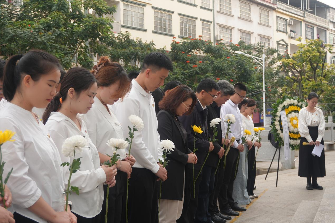 随后,全场默哀1分钟,大家低头静思,追忆先烈们为国家独立、民族解放作出的伟大牺牲,感悟今日幸福生活的来之不易。