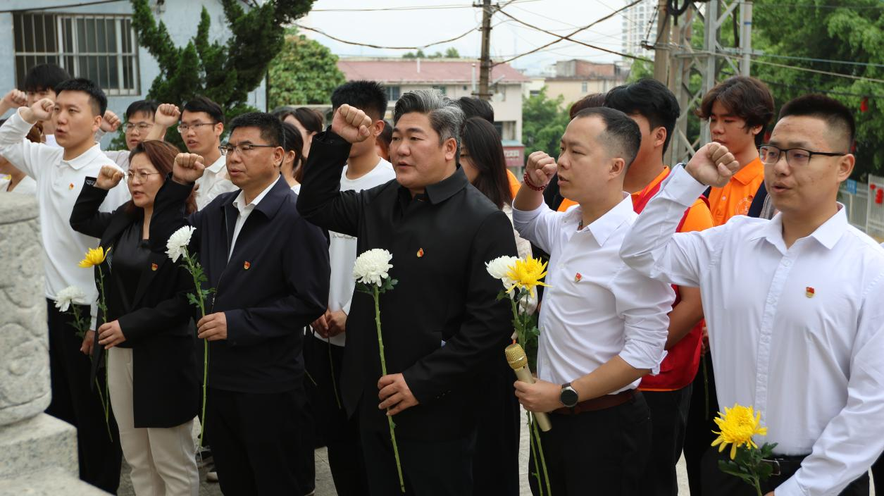 紧接着,全体党员同志面向烈士纪念塔,举起右拳,重温入党誓词,铿锵有力的誓言回荡在现场,既是对入党初心的坚守,也是对先烈的庄严承诺,更是传承红色基因、续写时代华章的坚定决心。