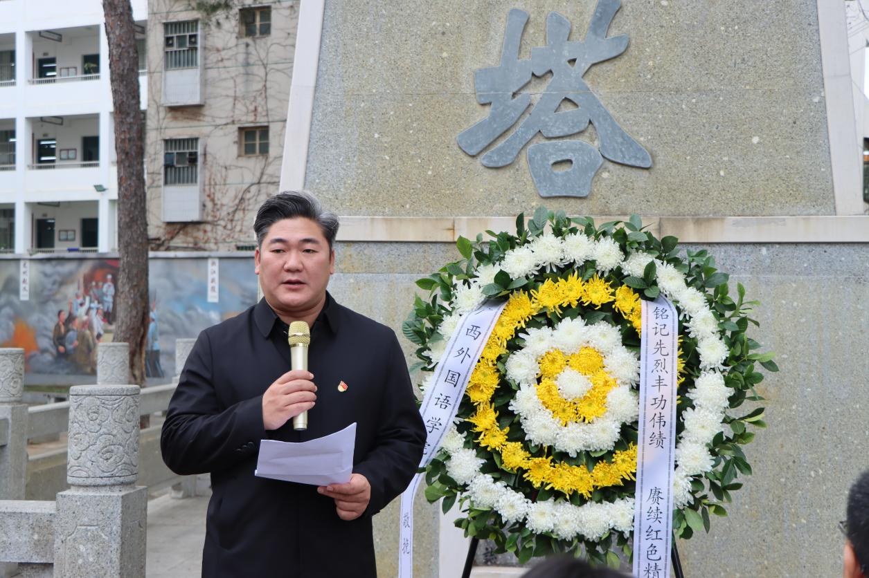 学校党委副书记钟志锋同志发表讲话。他结合革命先烈的奋斗历程,深情讲述了先烈们为民族独立和人民解放抛头颅、洒热血的英雄事迹,强调了新时代师生传承先烈精神、担当时代使命的重要意义,鼓励全体师生以先烈为榜样,坚定理想信念,锤炼过硬本领,将爱国之情、强国之志转化为报国之行,立足本职、奋勇争先,为学校发展和国家建设贡献力量。