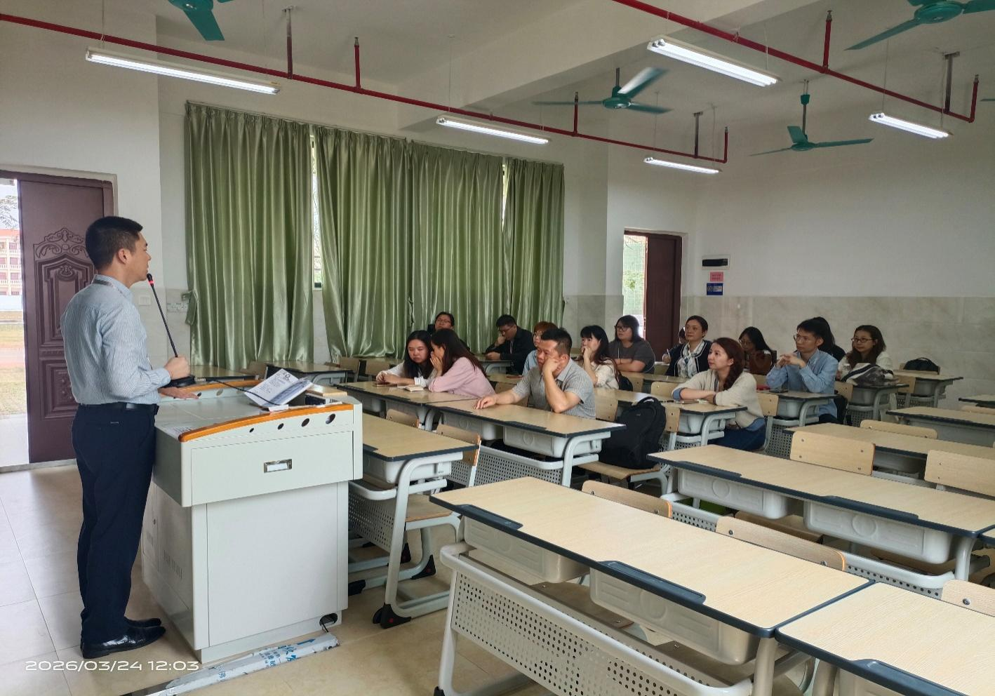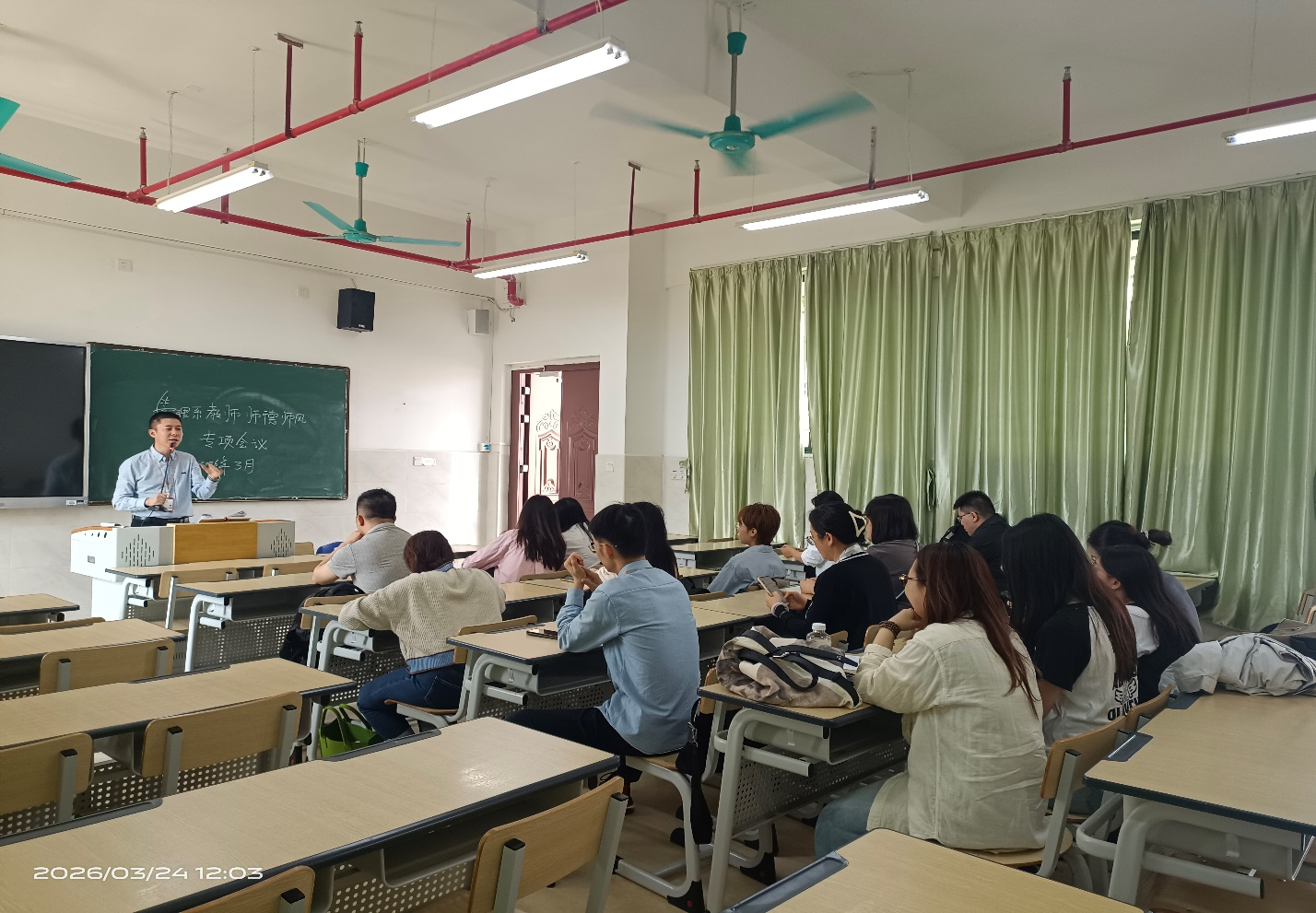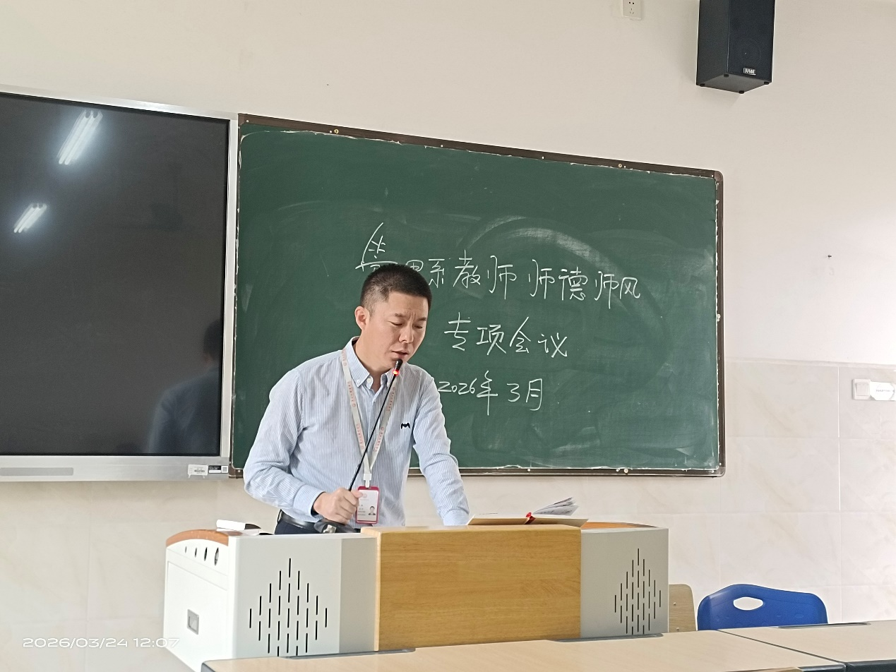 为深入贯彻落实党的教育方针,强化教师职业道德建设,筑牢立德树人根基,高等职业学院管理系于2026年3月24日在明德楼115教室召开了师德师风专项会议。本次会议由管理系副主任李阳主持,系部全体教师参会,旨在系统学习师德师风规范要求,明确行为准则,并将其深度融入日常教育教学实践。
