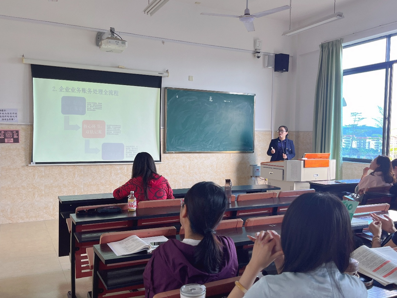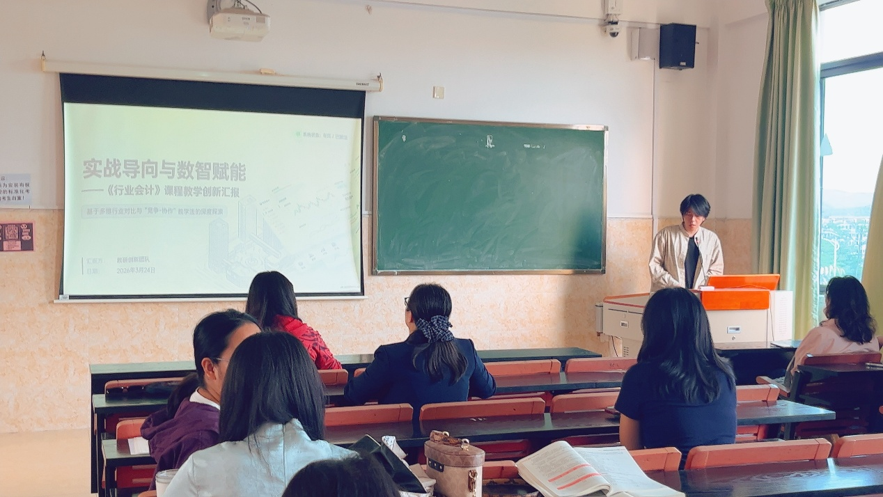 议程第二项,叶绍燊老师带来《行业会计》课程创新分享。他聚焦不同行业会计核算差异,以商贸、制造、服务等行业为例,阐述对比式教学、项目化教学在课程中的应用,分享如何引导学生梳理行业会计共性与特性,搭建系统知识框架,同时结合企业真实账务数据,提升学生行业适配能力与职业判断能力。