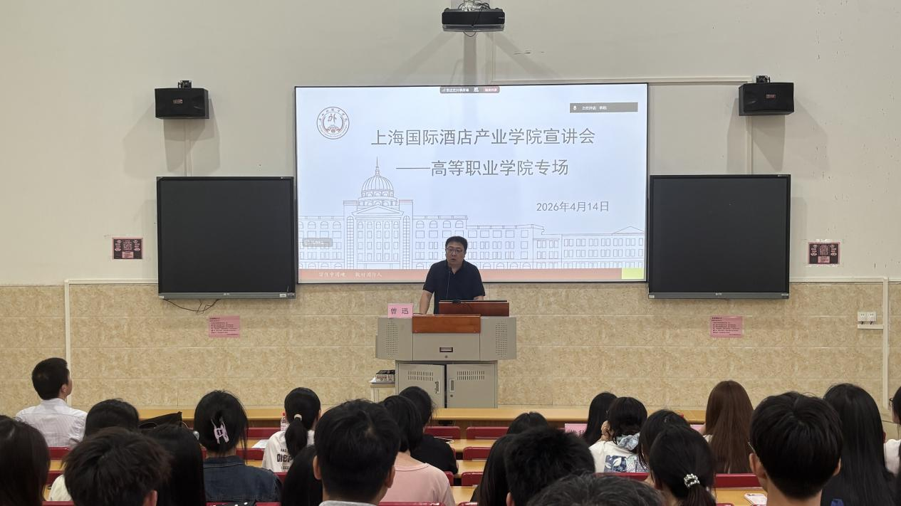 为深化产教融合协同育人机制,精准对接上海高端酒店行业人才需求,拓宽学生优质实习就业渠道,4月14日下午,上海国际酒店管理产业学院宣讲会在空港校区大成楼107教室顺利举行。高等职业学院副院长曾迅、上海国际酒店管理产业学院副院长陈炯及相关指导教师出席会议,上海九家知名酒店及餐饮企业人事负责人线上参会宣讲,酒店管理专业24级全体学生及相关专业学生代表到场聆听。会议由管理系副主任、酒店管理专业教师李阳主持。