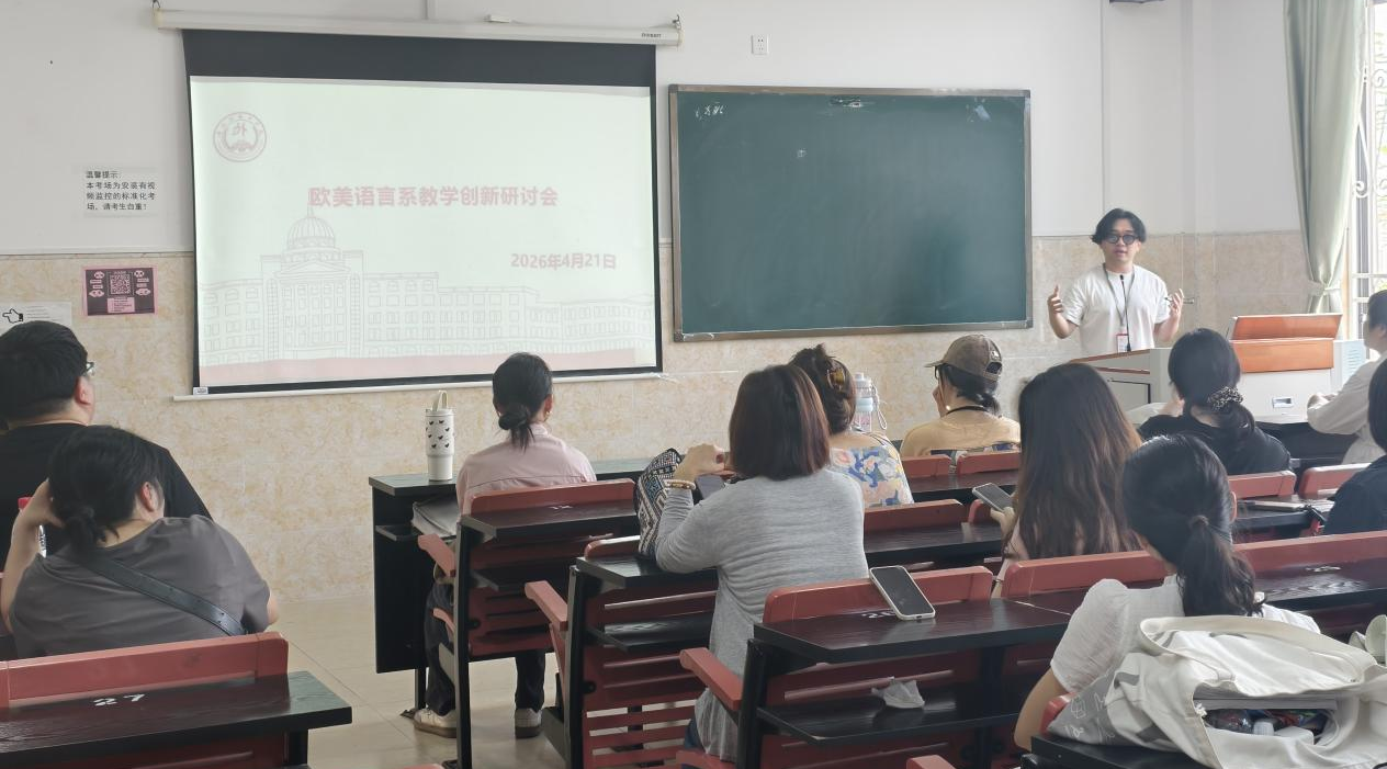 为切实提升外语教学质量,响应学校即将在五月中旬举办2026年青年教师教学竞赛和2026年教育教学数字化大赛的部署号召,4月21日下午,高等职业学院欧美语言系的老师们齐聚一堂,开展教学创新研讨会。本次会议由系副主任黄超主持,全系教师以研促教、以教提质,为扎实推进日常教学工作筑牢根基,也为即将到来的两项教学赛事蓄力赋能。
