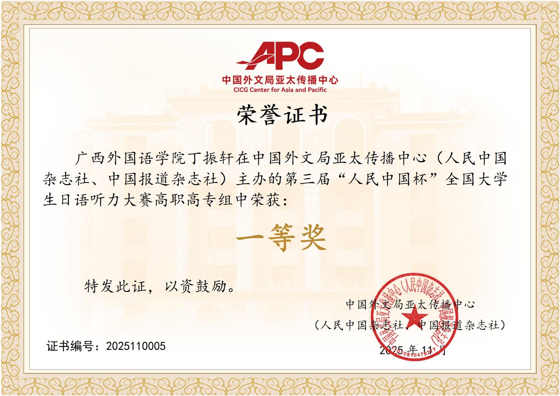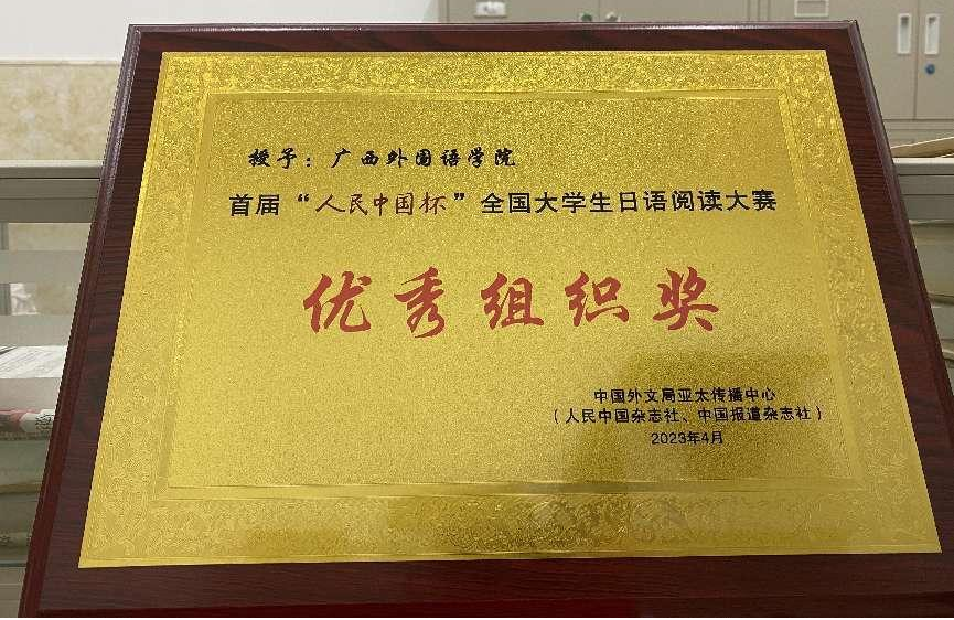 “人民中国杯”全国大学生日语阅读大赛优秀组织奖