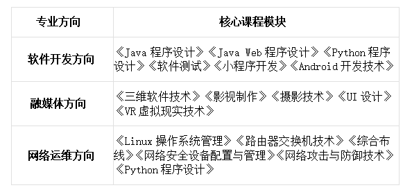 软件开发方向:可在IT企业从事Java/PHP程序员、Web前端开发工程师、小程序开发工程师、Android开发、软件测试员等工作。