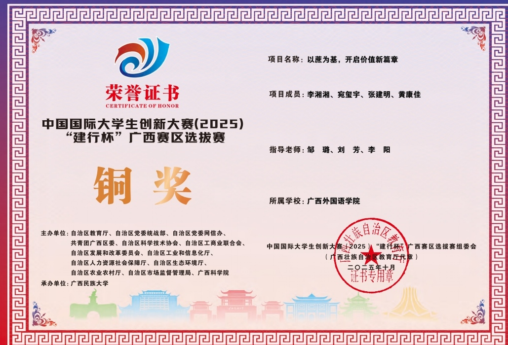 工商企业管理专业2021级徐野同学代表广西壮族自治区,参加2023年全国职业院校技能大赛高职组英语口语赛项非专业组比赛,荣获全国三等奖的好成绩