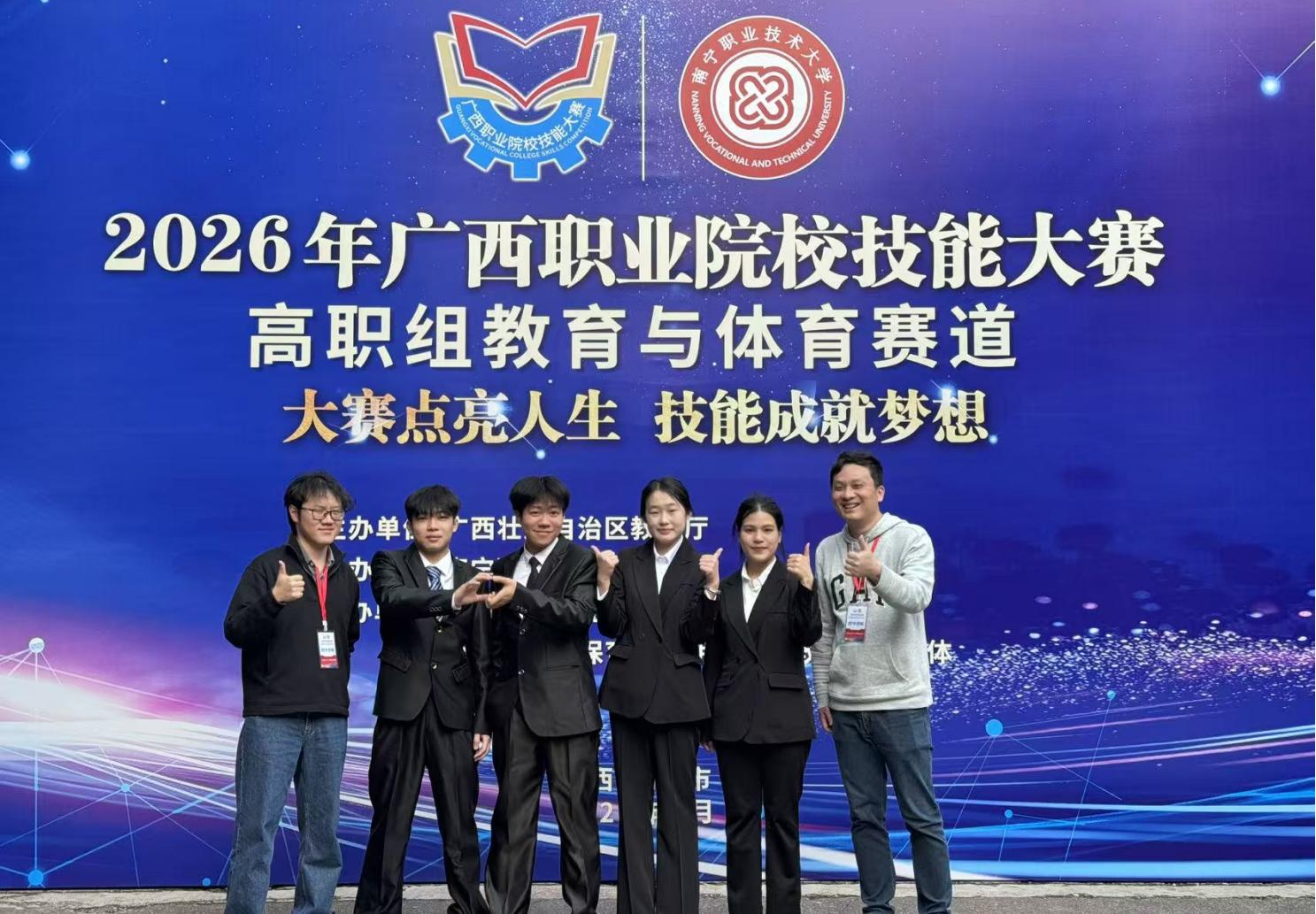 (应用法语专业教师赖沙聪(右一)指导学生参加2026年广西职业院校技能大赛)