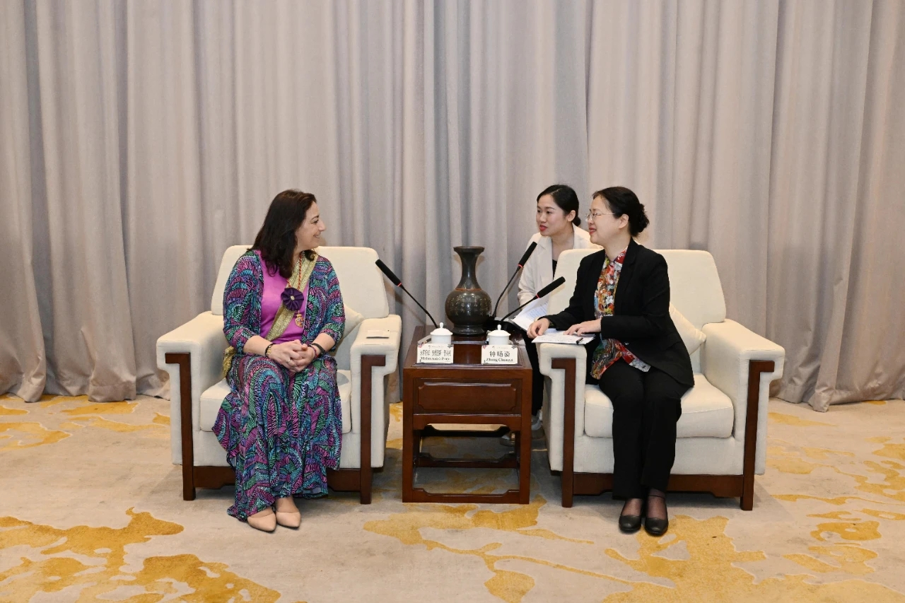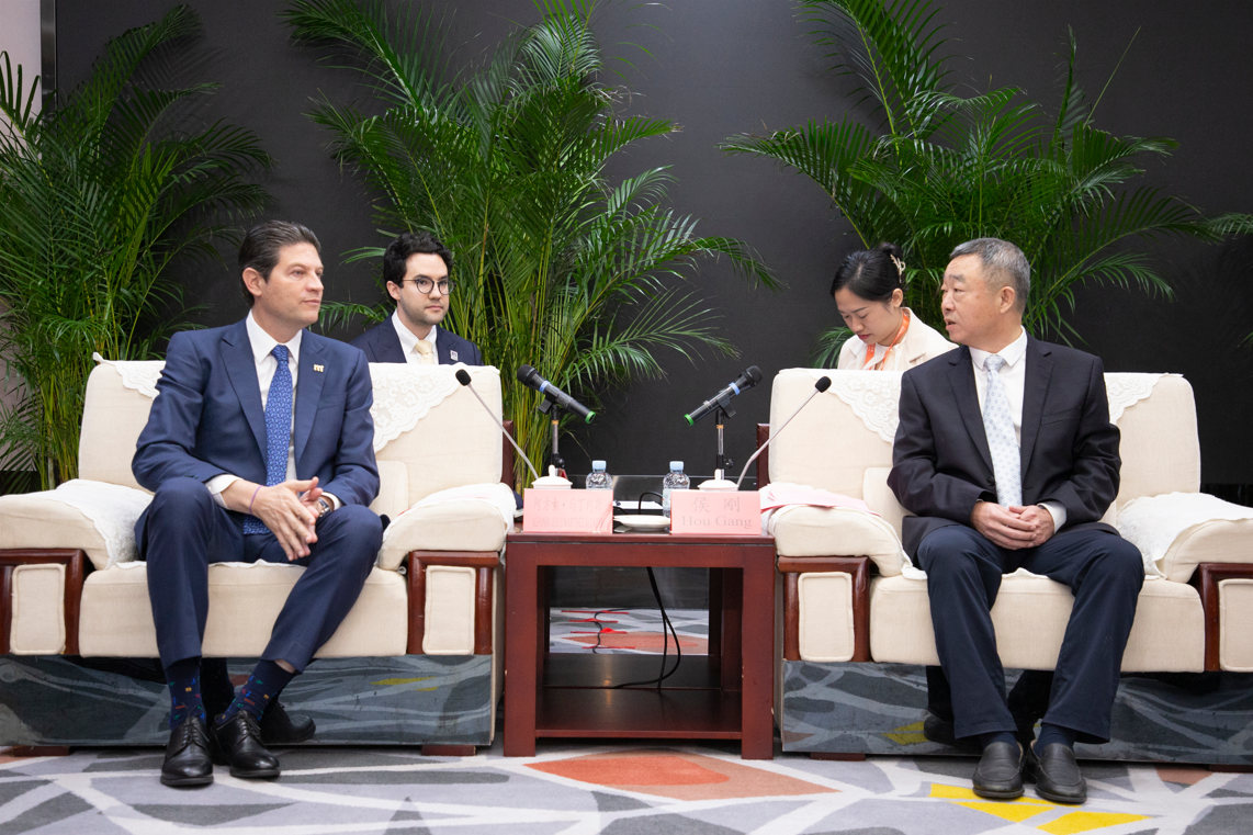我校西班牙语教师黄诗琪(右后)在中国—东盟博览会-南宁与墨西哥莫雷利亚团会议中承担翻译工作