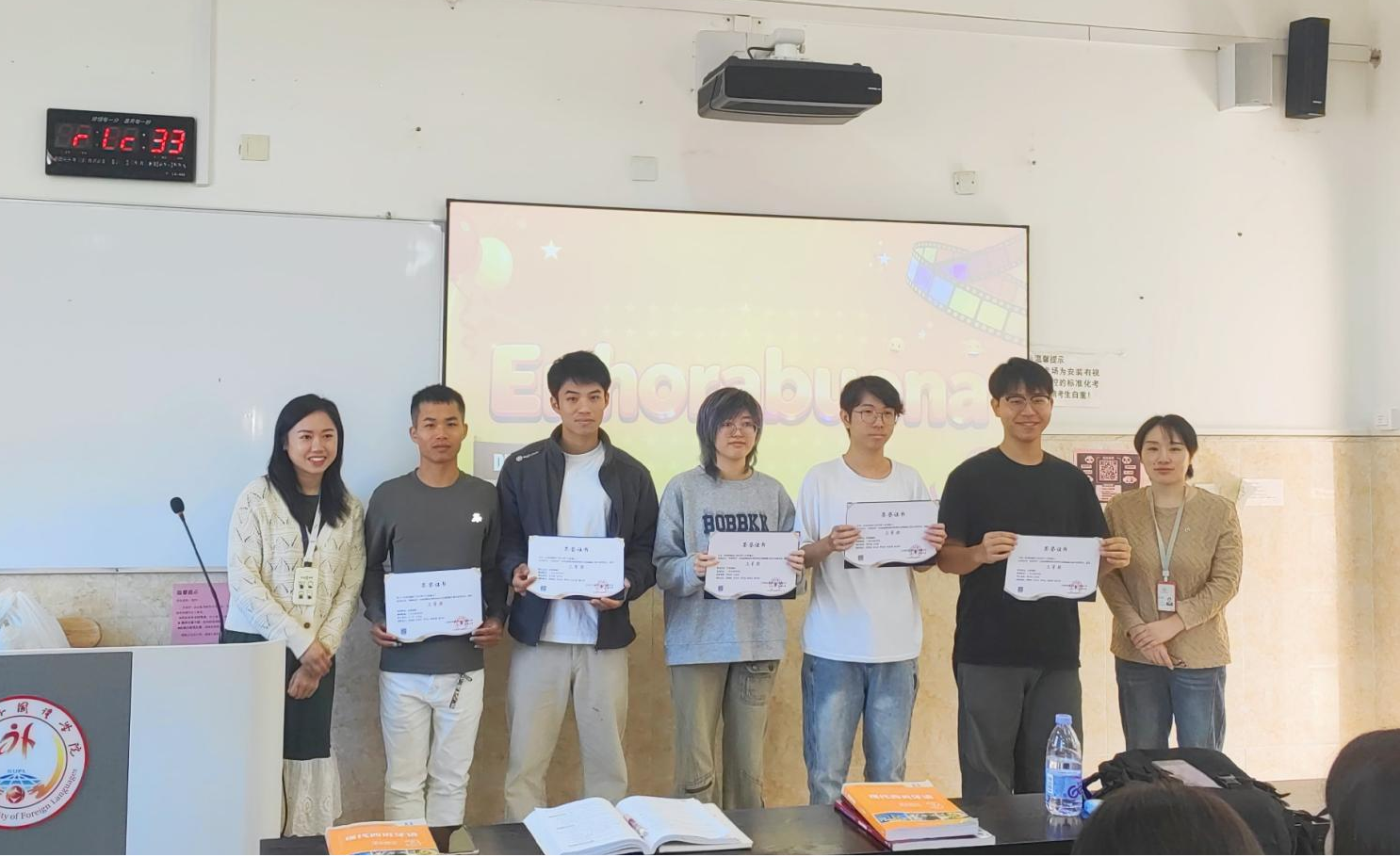 应用西班牙语专业学生比赛获奖颁奖现场
