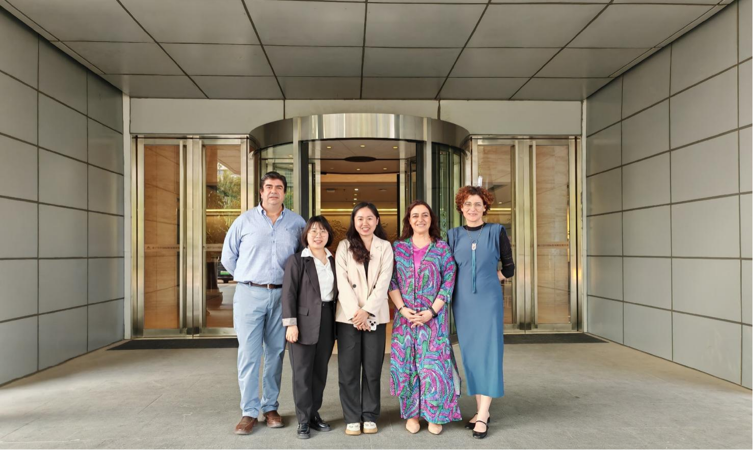 我校西班牙语教师黄诗琪(中)与西班牙帕伦西亚省帕伦西亚市议会代表团合影